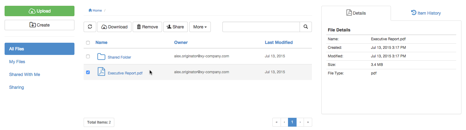 View, print or download personally owned files which you had previously uploaded and stored securely with the Safe Share web application or Safe Share for Windows. These actions can also be performed on files that you had uploaded to share through another user's folder with the Safe Share web or Windows applications.