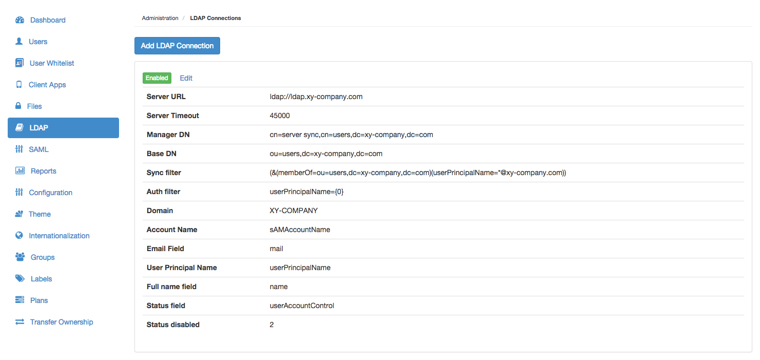 To ensure that field modifications to LDAP user accounts are propagated through to the Covata Platform, verify that these accounts' respective LDAP connections have been enabled.