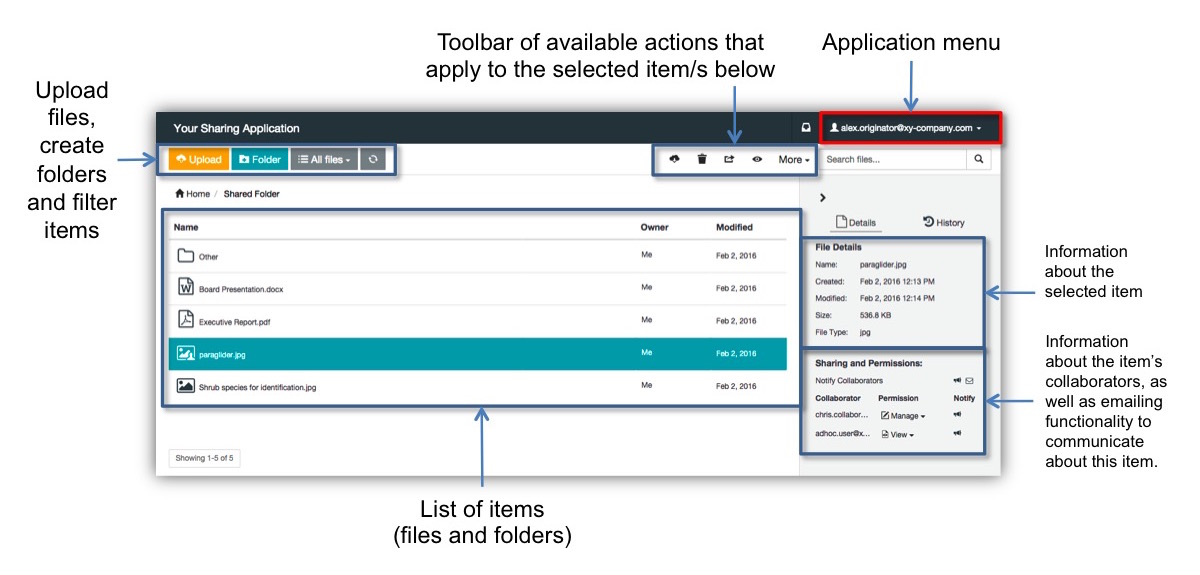 A user of Safe Share applications (known as a Covata user) uploads, stores, shares, accesses and manages content (i.e. files and folders) through a self-contained unit called an organization.