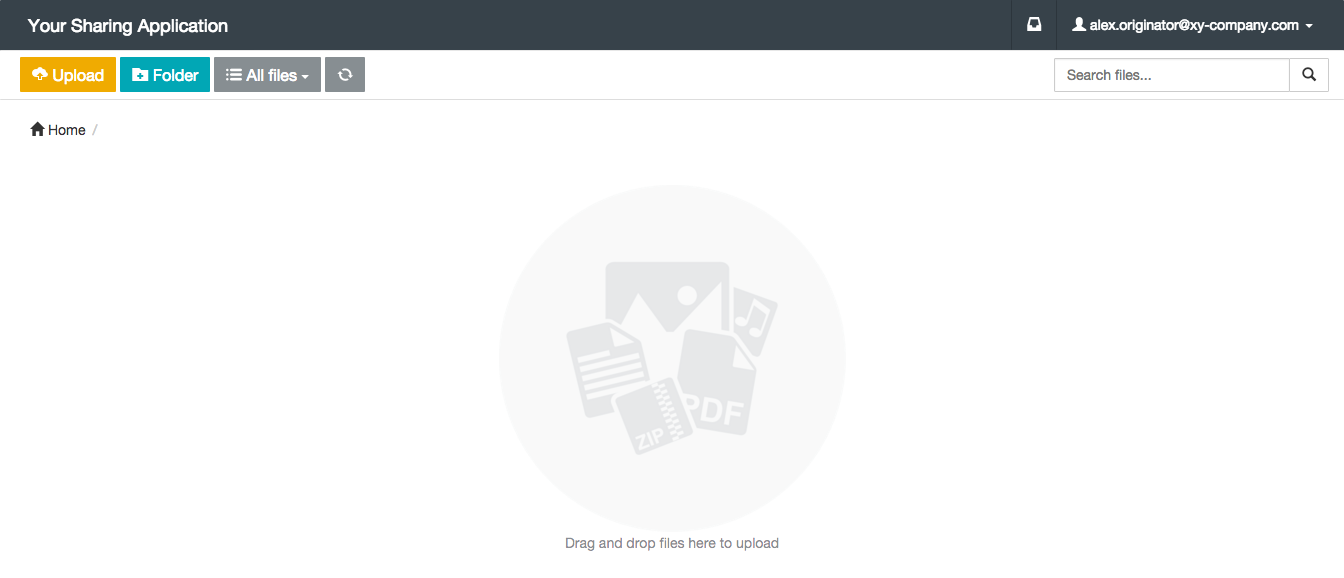 If you navigate to another page within the Safe Share web application, you can easily navigate back to the root location of the main Safe Share page by clicking your email address at the top-right and choosing Home from the drop-down menu: