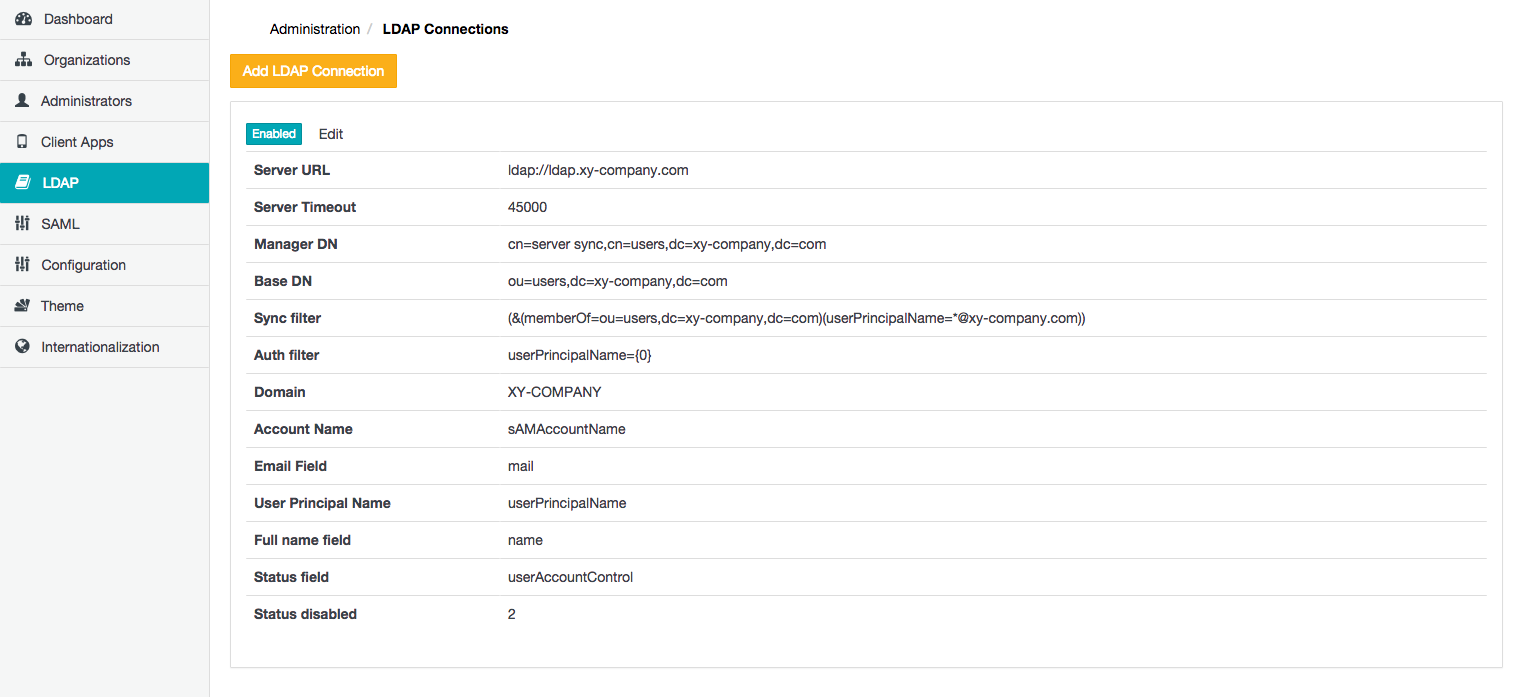 To ensure that field modifications to LDAP user accounts are propagated through to the Covata Platform, verify that these accounts' respective LDAP connections have been enabled.