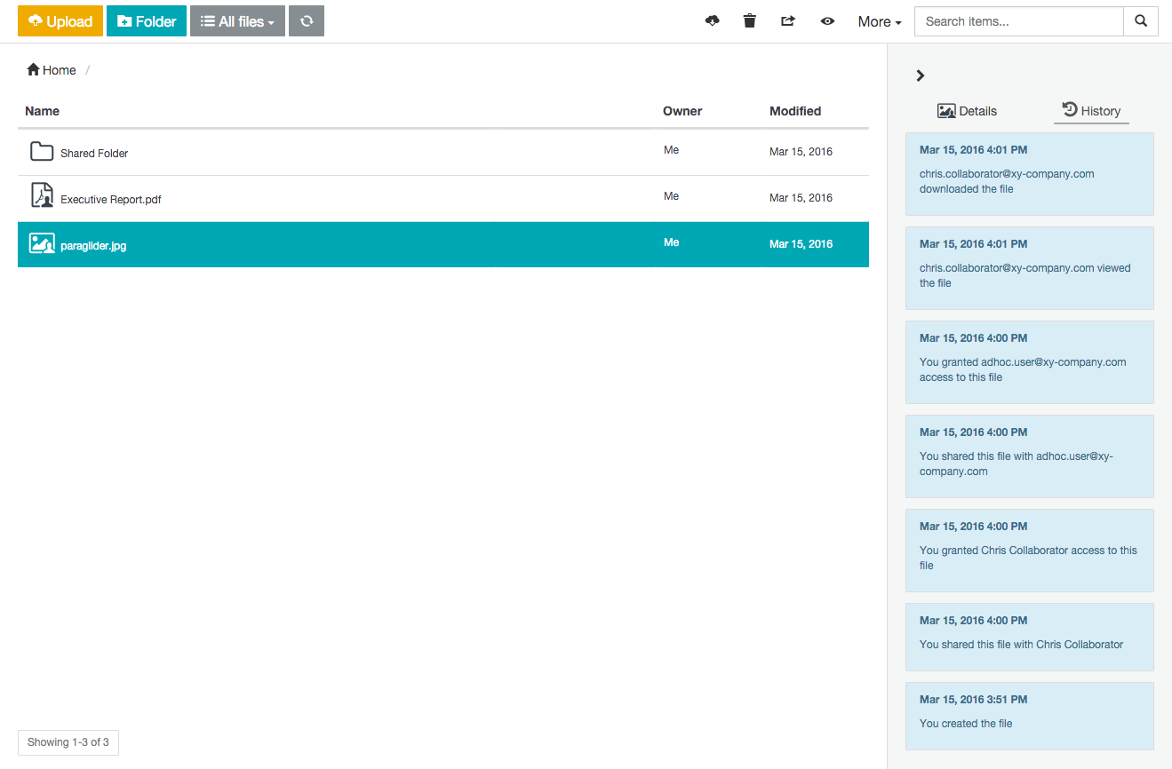 - As a collaborator with Upload, Download or View permissions on a folder you did not create, no activity is shown on the History tab.