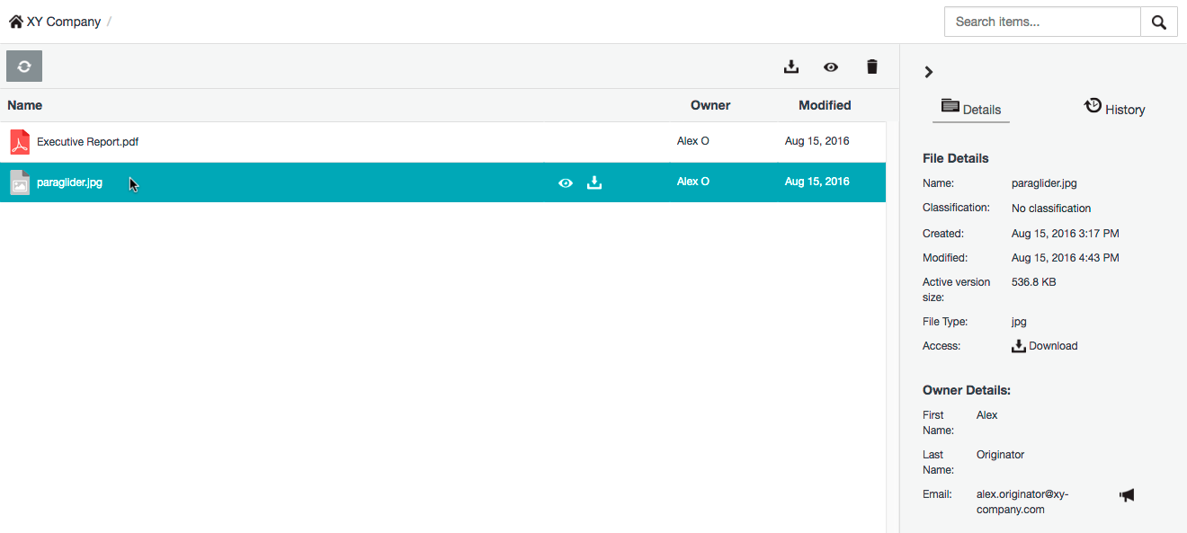 - Select the item from which to remove your access and verify that Access within the File/Folder Details section of the Details tab does not indicate Modify or Manage permissions. Otherwise, proceeding with the next step will instead remove this content.
