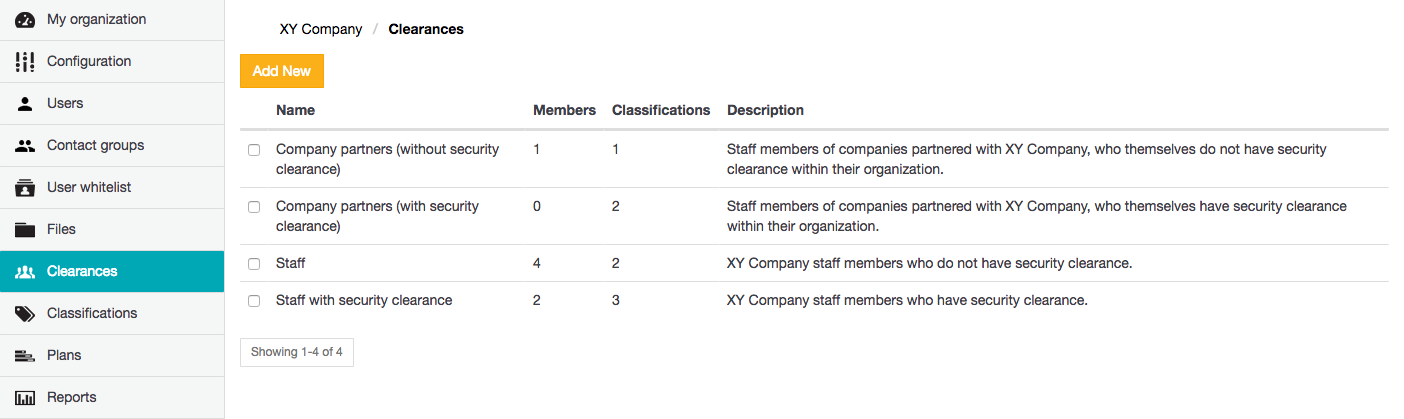Note: Clearances are not exposed in any way to Covata users who do not have the Organisation administrator role.