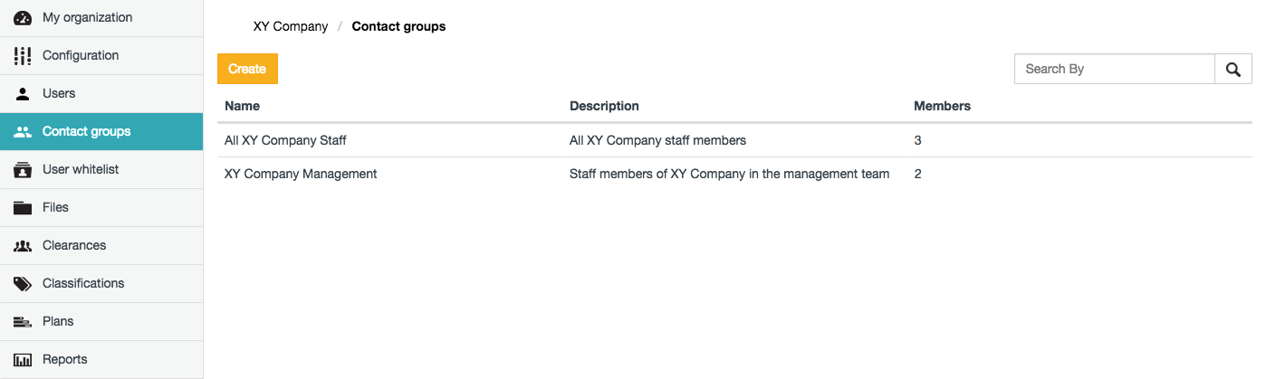 Organisation administrators can create and modify contact groups, each of which is a group of Covata users (with the Originator role) with whom items can be shared. This avoids the need for a Covata user to specify each email address of a group of users each time they need to share an item with that group of users.
